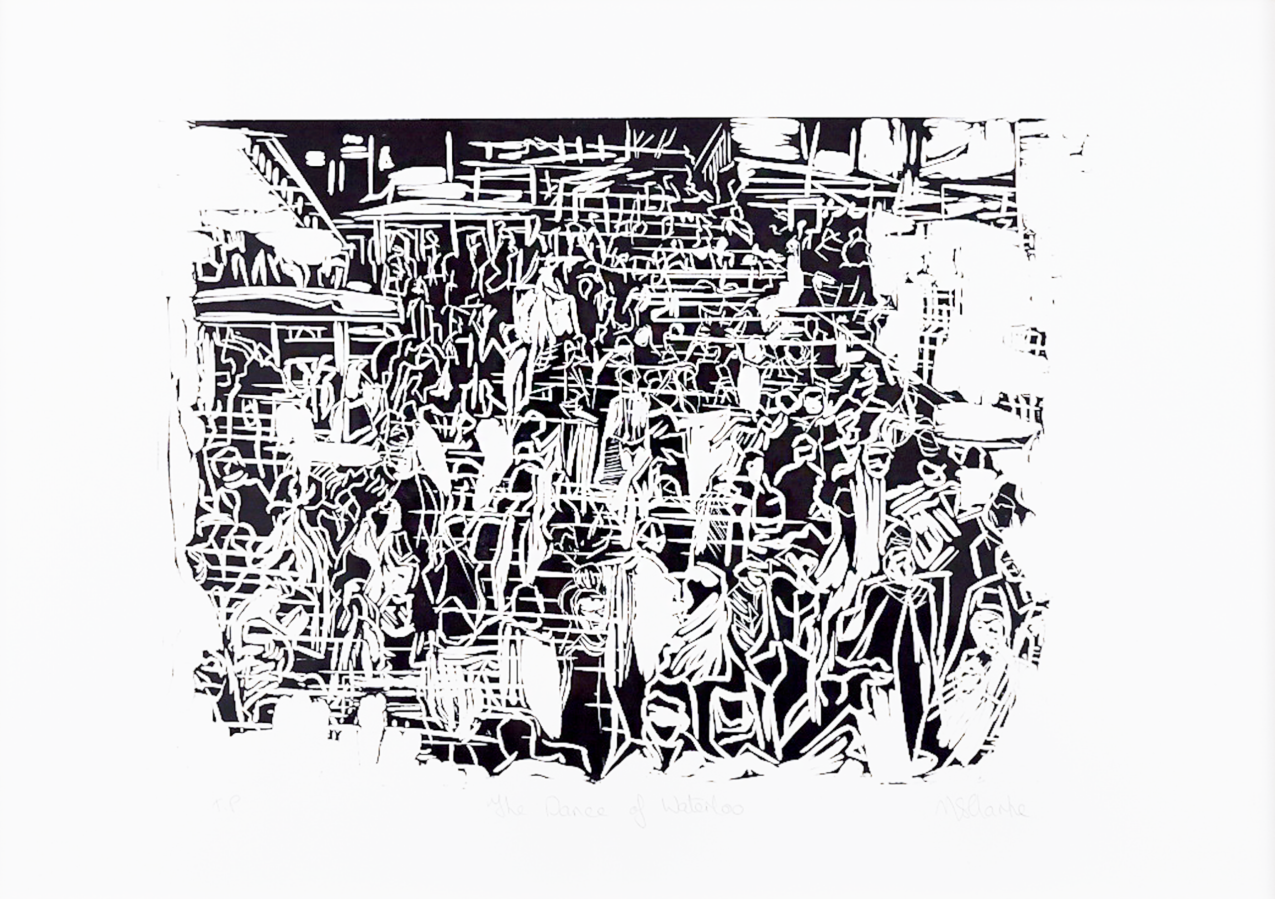 Nic Clarke is an artist passionate about exploring the intersection of art and dance to promote the recording of our ability to ‘not not move’, especially when we are moving in a crowded place! She wants to share this joy by bringing art that will make your walls dance and give energy to your surroundings. She makes digital artworks made from hand-drawn animations and print techniques (Linoleum & Lithography); Limited edition Linoleum cut prints; Original paintings. Order your favourite digital prints here, and contact me for the limited editions and originals at clarke1.nic@gmail.com